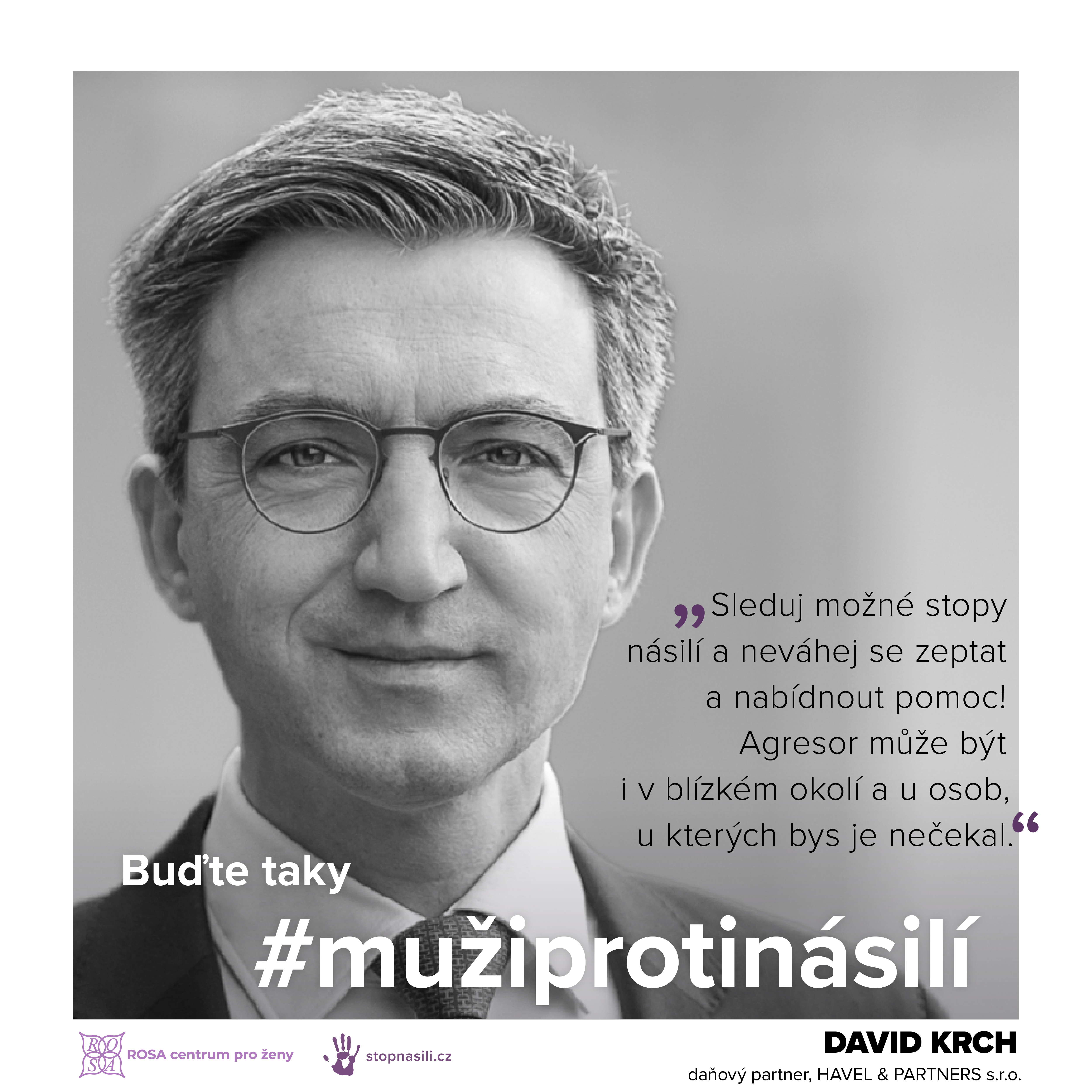 „Sleduj možné stopy násilí a neváhej se zeptat a nabídnout pomoc !  Agresor může být i v blízkém okolí a u osob, u kterých bys je nečekal.“ David Krch, daňový partner HAVEL & PARTNERS.