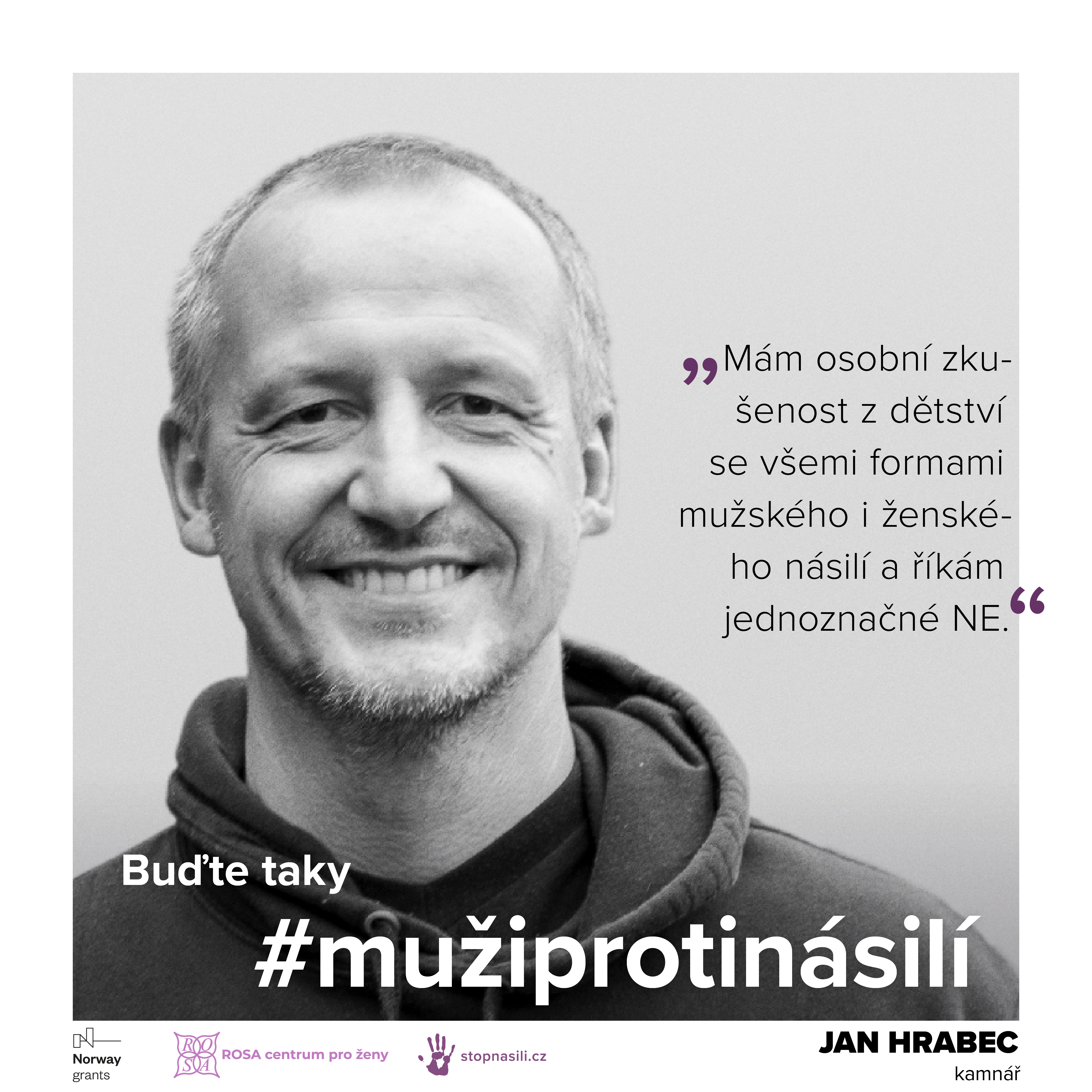 „Mám osobní zkušenost z dětství se všemi formami mužského i ženského násilí a říkám jednoznačné NE. Násilí si nepamatuji, vytěsnil jsem ho z vědomí. Denně pochybuji, zdali se stalo či nestalo. Hmatatelné důkazy neexistují, okolí Vám nevěří, cítíte se méněhodnotní, dokonce se za to stydíte a obviňujete, protože Vaše pravda je často společensky nepřijatelná. Násilí páchá jen další násilí. Pojďme problém násilí brát opravdu vážně. “ Jan Hrabec